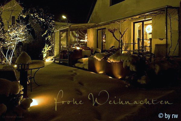 Mir gefällt das Bild von felicia mit dem warmen Ton ausgesprochen gut. Ich finde, der Garten wirkt wie mit Kerzen ausgeleuchtet.