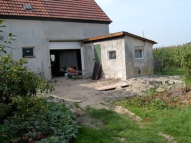 Hallo Fuchs,pardon, hatte nur bis 2. gelesender schmale Raum, ist ein ehemaliger Hühnerstall, angebaut aus Stein. Ich nutze ihn jetzt für meine Gartensachen. Wenn wir den beseitigen dürfen wir nichts mehr aus Stein an der Stelle aufbauen, sind im Außenbereich. Der wird allerdings im Zuge der allgemeinen Sanierung ordentlich verputz, gestrichen. Irgendwann soll auch eine neue Tür rein.Das Rolltor ist der einzige ZUgang zu unserem hinteren Grundstück für diverse Fahrzeuge. Außerdem ist das Rolltor mistneu, also die Saniererei geht über mehrere Jahre.Treppemstufen sind nicht erforderlich, weil alles auf gleicher Ebene, bis auf die kleine Terassentür in der Hausecke. Da wird ein Holzpodest entstehen mit 2 Stufen zu zwei Seiten.Mir ist wichtig, wie geschickt die 2 Pergolen miteinander zu verbinden sind, damit es wie eine harmonische Einheit aussieht.Zusätzlich benötige ich noch so etwas wie eine Bauanleitung für das Podest.nochmal dankeArtessa