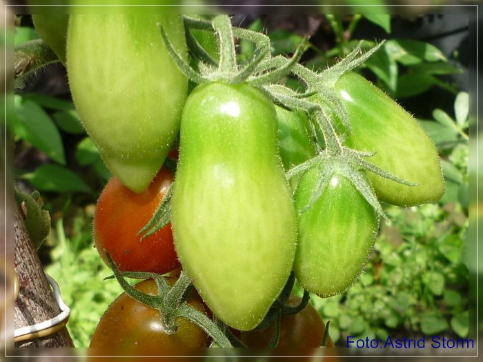 Stabtomate Juliette war sehr süß, knackig, sehr lange haltbar, nicht platzanfällig und ein Massenträger bis zum Frost. Die baue ich wieder an. Das Saatgut kam vom Sortenarchiv Gerhard Bohl.LG von July
