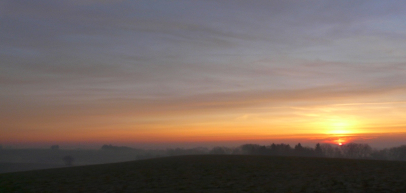 Oberpfalz 25 nördlich Regensburg, war auch Pracht von Morgenröte bei -2°C, Pfützen sind gefroren und die Stimmung heiter.