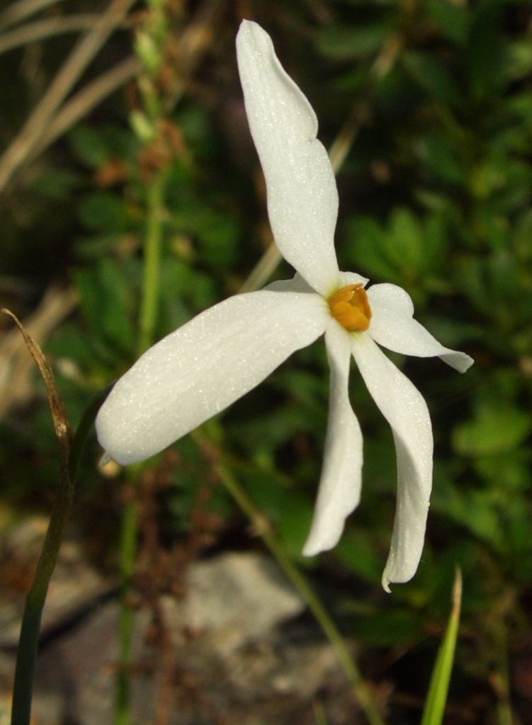 Die erste meiner botanischen Narzissen ist in Blüte gegangen: es ist Narcissus serotinus, ein Kleinod aus El Andaluz. Die Pflanze ist unter Glas ein problemloser Pflegling, die von mir gekauften Zwiebelchen aus Absaaten blühen jetzt im zweiten Standjahr.