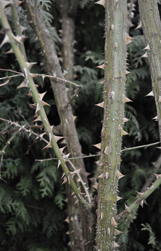 Aprikose,ich bin jetzt heute mal mit der Kamera durch den Garten gegangen.Die meisten Rosen haben ja eigentlich normale Stacheln.Ich habe jetzt mal nur die aufgenommen, die meist unregelmässig und mit eher grösseren Stacheln bewehrt sind.Rötliche gibt es meist nur an den jungen Zweigen.Die Stacheldrahtrose hat sehr schöne rorte leuchtende Stacheln, wenn sie jung sind. Ich habe sie exakt so gepflanzt, dass die Abendsonne eine Feuerwerk durch die Stacheln veranstaltet. Herrlich. Leider kann ich das Foto nicht mehr finden. Und im Moment ist nur grau in grau da draussen.