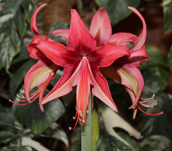 genau das hatte die Pflanze, die inSekt gezeigt hat bei ihm. "warm im Oktober". Dass sie so satt im Futter steht und so zuverlässig geblüht hat, jetzt, in der indoor Zeit, das ist offenbar zwei Umständen zu verdanken. Oder dreien.Die Rittersterne stehen bei mir in großen Töpfen, die mit reifem Kompost gefüllt sind.Den ganzen Sommer über draußen und vor Schnecken geschützt, aber schattig, kühl und mit hoher Luftfeuchtigkeit ohne zusätzliche Bewässerung.Diese Hippeastrum Papilio Grp. ist offenbar nicht in Bezug zum Blütenansatz durch Wärme-pulse-chase-Behandlung manipulierbar.Immer wieder schön wie hier eins ins andere greift und sich ergänzt! Danke!Dankbar für Wärme, jedoch weniger Wärmebedarf. Und NICHT immergrün.H.papilio sollte ab Neuaustrieb im Oktober warm stehen, und nach den Eisheiligen rausgestellt werden (Schutz gegen Narzissenfliege nicht vergessen) dann blüht se im November. Sie ist nicht gut "manipulierbar" durch ein Temperaturprotokoll wie z.B. H.cybister ("Chico") und Hybriden von Papilio damit.