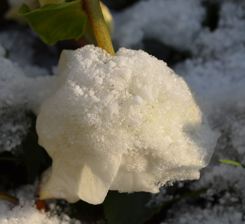 Heute morgen sah mein Helleborus-Gartenstern gebeugt und behütet aus.