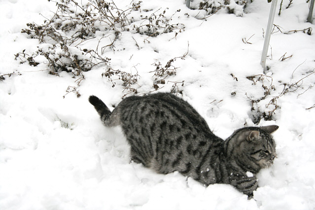elis, wieder so schöne Bilder von deinem Seppi! Das ist so ein herziger Kerl!Gimli fand den Schnee gestern so schrecklich und hat sich richtig geekelt, dass sie sogar kurz das würgen anfing.Ich hatte nur eine Katze, die Schnee liebte, das war Beethoven. Leider schon 9 Jahre im Regenbogenland. Sie hat sich Schneebälle gemacht und damit gespielt und versucht Tunnel zu graben, oder ist wie ein Fuchs auf Mausjagd mit grossen Sätzen immer wieder kopfüber in den Schnee gesprungen.In der aktuellen Mannschaft hat nur Pepe ein mässiges Interess daran, im Schnee herumzutoben.