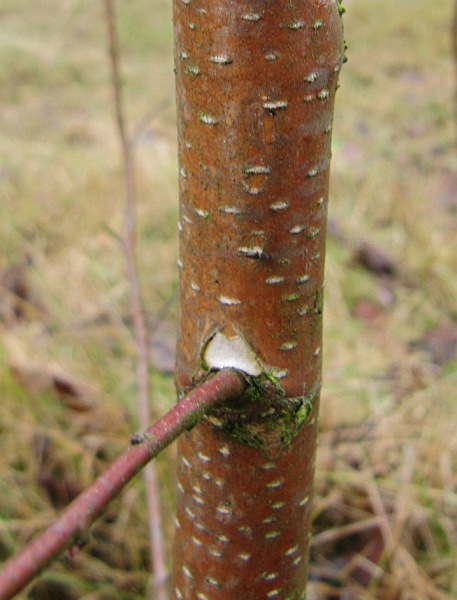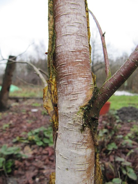 Wie alt ist sie denn, Oile?Die brauchen etwa 5 Jahre, bis die Rinde langsam weiss wird.Die Betula utilis zeigt weiterhin nur direkt über dem Astansatz eine kleine leuchtend weiße Marke. Ob das noch was wird mit dem weißen Stamm?
