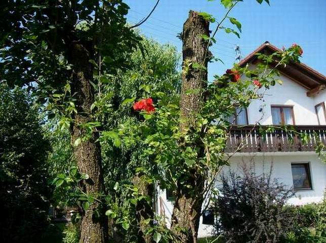 Hallo !Kletterrose ist ca. 2,5 m, oben mehr verzweigt mit Blüten.gruss Siggi