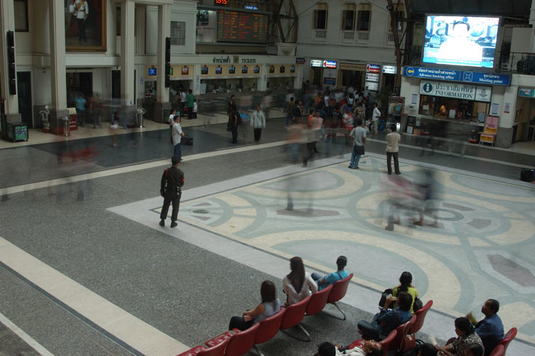 ... zu früh am Bahnhof Hualamphong, warten wie alle ...