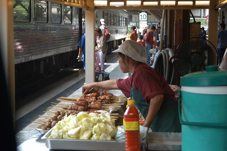 ... zu früh am Bahnhof Hualamphong, warten wie alle ...