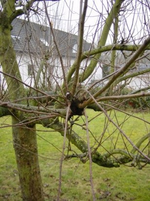 Hallo,ich habe von meinen Brüdern die Pflege des elterlichen Apfelbaums "geerbt". Ich kenne mich kaum aus, aber wie ein Apfelbaum sieht er für mich nicht aus. Zur Vorgeschichte weiß ich nur, dass er mit Vorliebe viele Blätter trägt (man kann von April bis Oktober nicht hindurch schauen) und er wurde im November 2011 kräftig zurückgeschnitten wurde. Angeblich von einem Kenner der Materie - doch die Apfelernte ging in 2012 gegen null. Und nun sieht er so aus. Da nun die Zeit des Baumschnitts gekommen ist, will ich mich selbst daran machen. Doch ich brauche Hilfe, wo ich die Säge ansetzen muss. Ich habe ein paar Fotos hochgeladen. Vielleicht habt ihr ein paar Tipps für mich, wie am Besten vorgehe. Ich hoffe, den Fachleuten unter euch stehen nicht die Haare zu Berge.Die Fotos machen Schwierigkeiten (das Problem sitzt immer vor der Tastatur) - jetzt habe ich die Fotos in neuen Beiträgen angefügt. Anders habe ich mir nicht helfen gwusst. Ich hoffe, ich habe nicht gleich gegen alle Forenregeln verstoßen.Wer kann mir anhand der Fotos sagen (zeigen), wo ich etwas abschneiden sollte? Gerne auch die Fotos bearbeiten und wieder einstellen.
