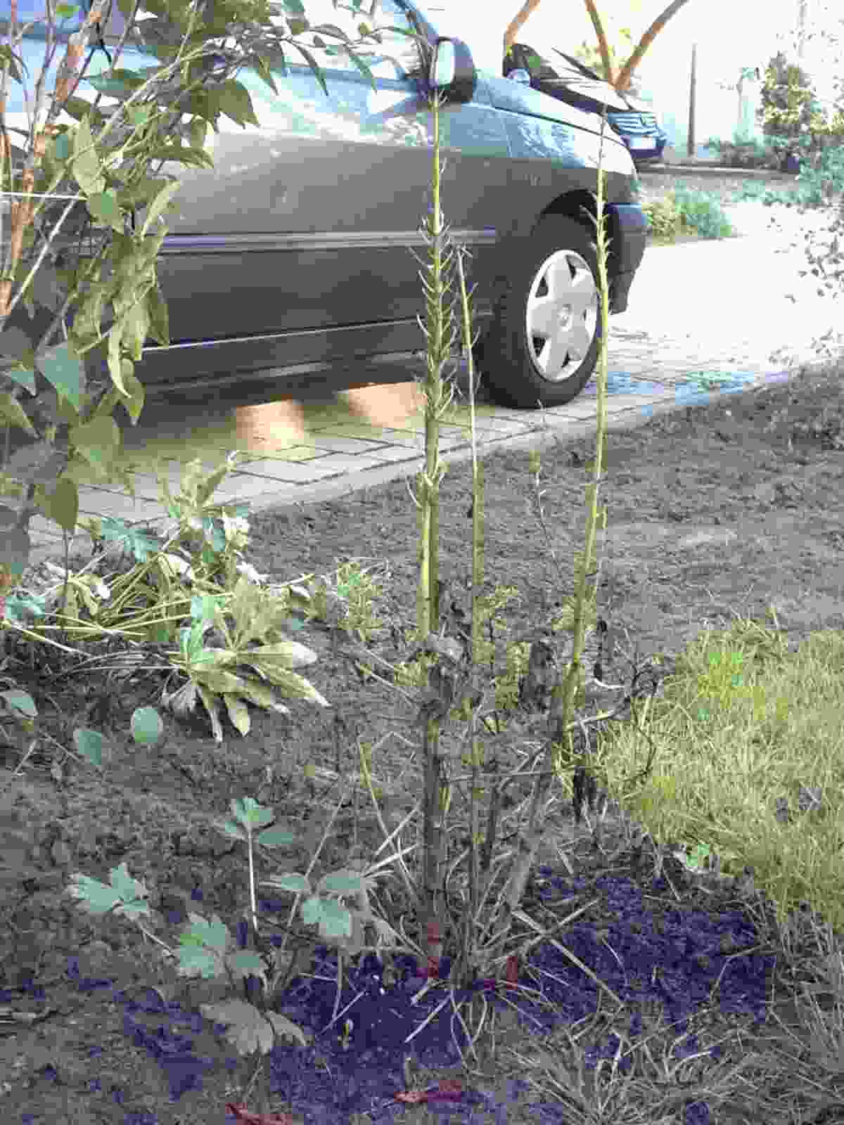 Ca. im Juni habe ich mir diesen dunkelblauen Rittersporn gekauft. Er blühte (zwar nicht in voller Pracht, aber ein wenig – ich dachte, dies sei erst der Beginn seiner Blüte...) einige Wochen, doch dann verblühte er (wie ich finde zu schnell, da er ja laut Schild bis Sept. blühen sollte) und wurde immer mickriger. Okay, ich dachte mir halt, dass er den Umzug auch erst mal verarbeiten und sich an die neue Umgebung gewöhnen muß – also gönnte ich ihm das und freute mich schon auf seinen Austrieb im nächsten Jahr. Doch als ich heute morgen einen Stengel dieses Rittersporns abgeschnitten habe, habe ich festgestellt, dass in dem hohlen Stengel (sind die eigentlich immer hohl?) bzw. in dem ca. 10 cm langen Stück Stengel 2 kleine (nicht mal 1 cm große) weiße, dünnen Raupen (sie sahen zumindest wie Raupen aus) gekrochen sind.Was können das für Raupen sein? Ist das normal (sind sie gar nützlich, was ich mir aber nicht vorstellen kann)? Oder sind es Schädlinge?Ich wollte meinen Rittersporn heute morgen umpflanzen (der aktuelle Standort ist mir nicht sonnig genug und der neue Standort gefällt mir besser) und einen rosafarbenen Rittersporn, den ich mir am Samstag gekauft habe, daneben pflanzen. Kann ich das trotzdem noch tun oder wie sollte ich meinen blauen Rittersporn behandeln (oder gar vernichten)?Die Fotos zeigen meinen mickrigen Rittersporn von heute morgen (ich hoffe, man kann trotz des Nachbar-Autos im Hintergrund etwas erkennen?).Links neben dem Rittersporn wächst etwas – was kann das sein? Die Blätter sehen denen des Rittersporns sehr ähnlich, vermehrt er sich etwa??? Oder ist es Unkraut? Rechts neben dem Rittersporn waren 4 weitere solche kleinen Pflanzen (in meinem gestrigen „Unkraut-zupf-Wahn“) habe ich sie entfernt – aber sicherheitshalber noch aufgehoben). Sie haben viele Wurzeln, sind eigenständige Pflanzen für sich, d. h. sie waren mit den Wurzeln nicht miteinander verbunden (auch nicht zum großen mickrigen Exemplar).Ich danke Euch schon mal im voraus für Eure Hilfe. Da ich Garten-Neuling bin (ich befinde mich noch in meinem ersten Jahr) kenne ich mich mit den meisten Sachen noch nicht aus – und den Rittersporn möchte ich schon gerne nicht verlieren...Liebe Grüße,Angi