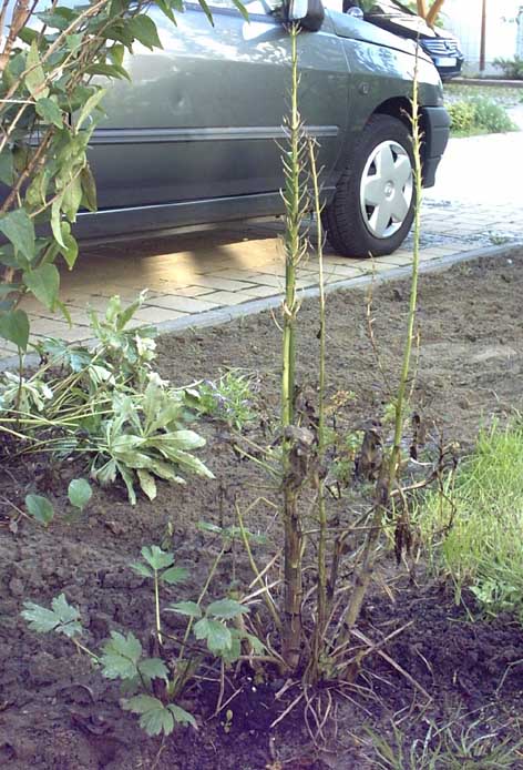 - Jetzt kommt es auf den Rückschnitt an: so etwa eine Handbreit über dem Boden werden die übrigens immer hohlen Stängel gekappt.