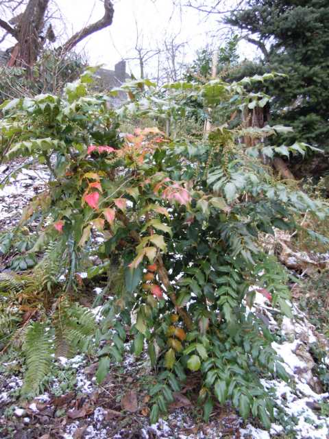 Der Winter hat uns wieder. Ein Leuchtpunkt an diesem trüben Nachmittag: Mahonia x media.