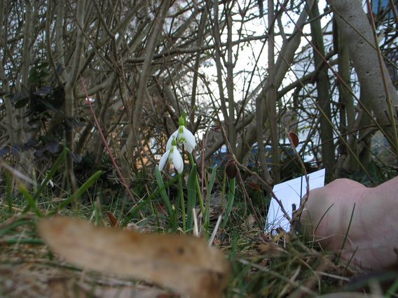 In dem Gärtchen wo ich jetzt wohne ist in der Nachbarparzelle auch ein winziges Galanthus vom elwesii Typ das mir sehr interessant vorkommt. Die gerade abgebildete Pflanze ist 14 cm hoch zum Vergleich meine Hand daneben. Die zweite ist nur 10 cm hoch. Die Blättchen fast grasartig.