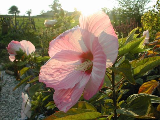 Hibiscus moscheutus hab ich auch. jetzt wo es regnet sind die riesen blüten natürlich total zerknautscht und verwässert