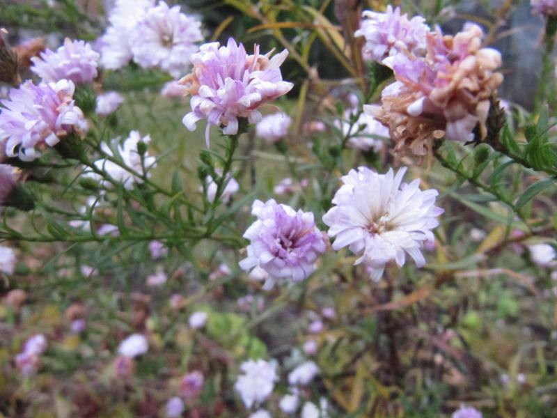 Ich wollte immer noch ein Bild nachschieben:so zeigte sie die letzten Blüten am 27. November.Ich habe keine Ahnung, woher ich diese Aster habe. Letztes Jahr war sie noch ein kleines Ding. Jetzt ist sie bestimmt 1,50m hoch, strotzt vor Gesundheit. Sie ist schneeweiß.![]()