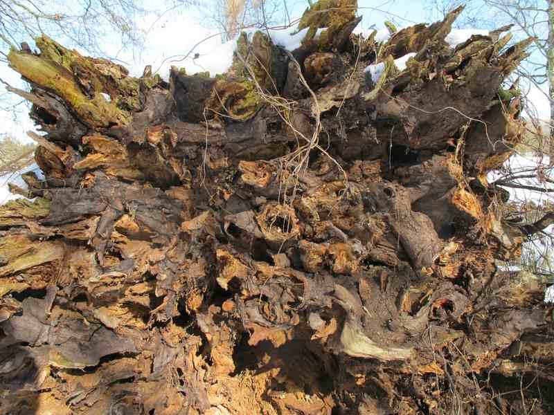 Der liegt dort, wo er liegt, sehr gut. ;) Die Strukturen der weggefaulten Wurzeln sind sehr schön. Im hohlen Stamm selber haben sich Mieter eingenistet. Der Zugang geht über den Wurzelteller.