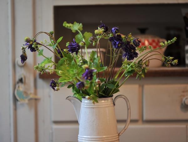 Kein richtiger Strauß - die Akelei hing mir im Weg, kein Wunder bei dem Dauerregen. Für den Kompost war sie mir zu schade...