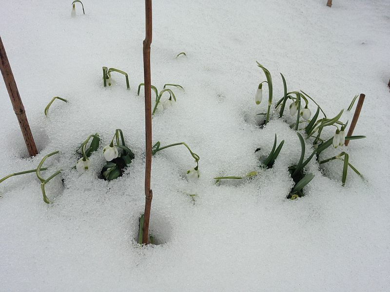 Hm - hier hat der Schnee auch die Gefüllten nicht gekratzt. Das Bild stammt vom 9. Februar: Danach hat's dick draufgeschneit, sie waren komplett weg - getaut - wieder geschneit, sie waren halb bedeckt und lagen flach - erneut getaut - etc.pp... Seit etwa 3 Wochen ist der Schnee jetzt weg, und die Glückchen stehen so aufrecht da wie im Februar. Sind jetzt bloß müde geblüht und zerwuschelt.