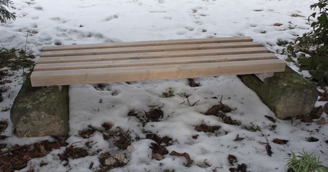 Eine ganz simple Version: zwei Sandsteinblöcke und ein paar Kanthölzer.