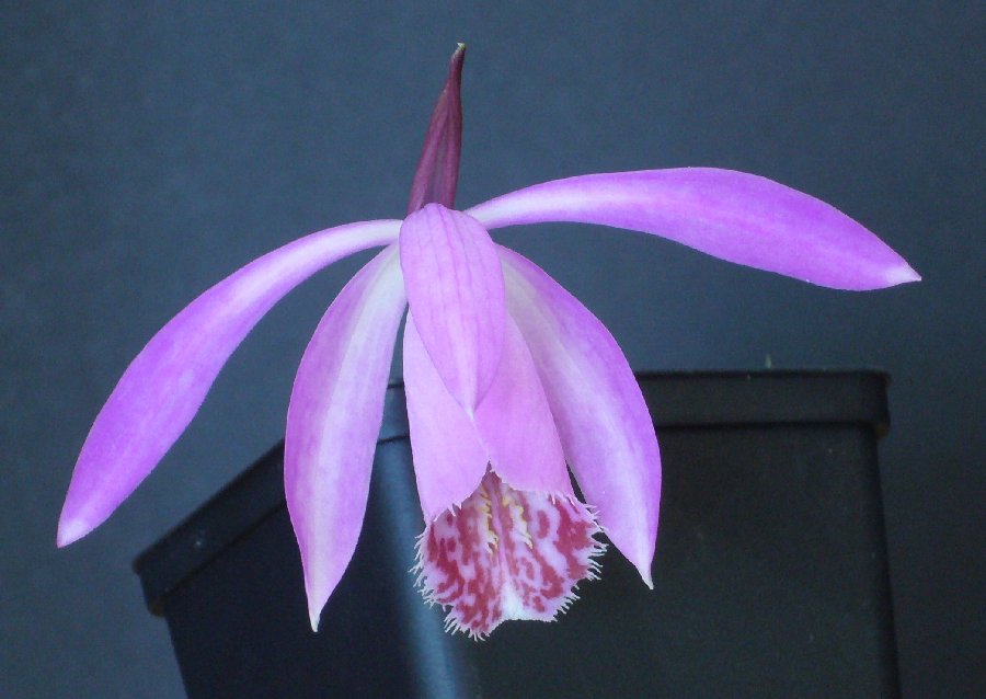 Bei mir ist es noch sehr ruhig bei den Pleionen, viele haben noch nicht mal mit dem Treiben angefangen. Pleione humilis ist weg, Eiger blüht und Zeus-Weinstein ist gerade Top in Blüte: