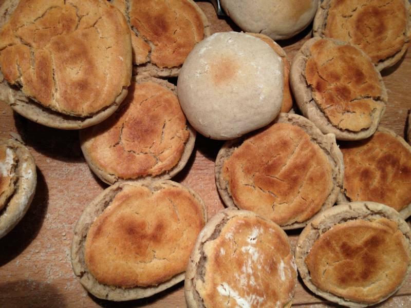 bitte festhalten:ich habe weizensauerteigbrötchen (und brot) ohne jegliche kontrolle versucht:100% freestyle-sauerteig, so etwa gut eineinhalb tage gare, davon ein tag vorteig und seit heute morgen teigteig... ;)herausgekommen sind gut saure und (immerhin) knackige, durchaus lecker-brotig schmeckende urzeitfladen à la mesopotamien.