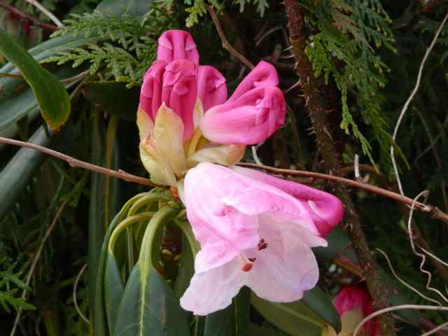 Mein Rh. praevernum blüht noch nicht, aber Rh.oreodoxa v. fargesii und die Hybride Rh. anthosphaerum 'Peppone' sind schon aufgeblüht.Rh. praevernum ist überhaupt nicht schwierig und hier völlig winterhart.Wie alt ist Dein Rh. barbatum ? Mein ca. vor 10 Jahren gesetztes Exemplar (von Cox) blühte noch nie.