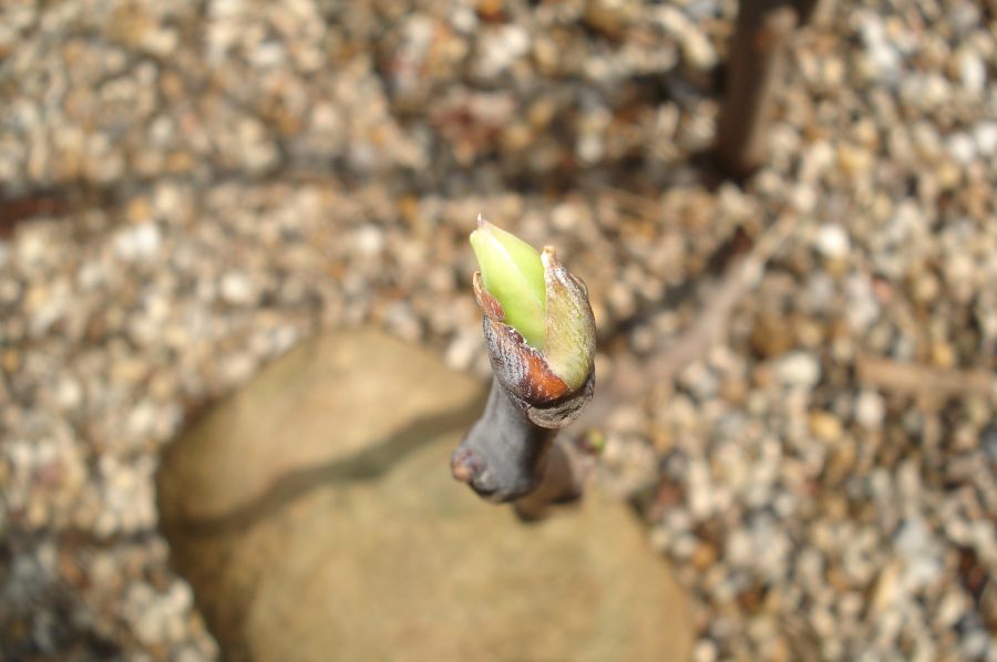 Bei Dalmatie regt sich etwas.. Sie ist die erste ausgepflanzte Feige, die austreibt.