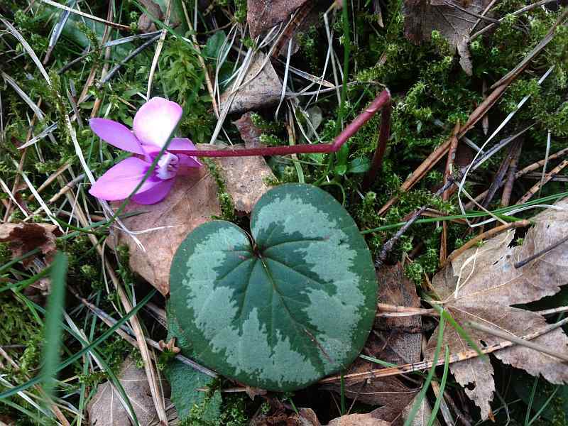 'Thor' ?Ein winziger Winzlingnoch.Haquetia epipactis variegata. Erst schauen die kleinen Blütchen aus der Erde, die Blätter folgen etwas später ..