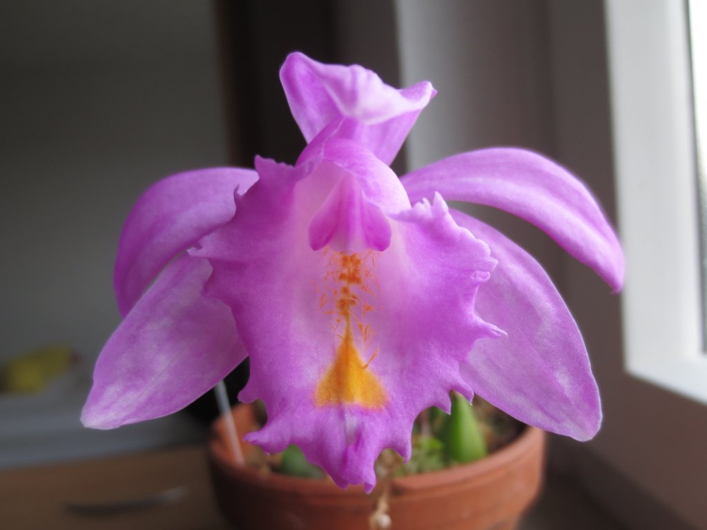 Pleione grandiflora mit intensiv gelber Lippe - ich bin ganz begeistert von der.