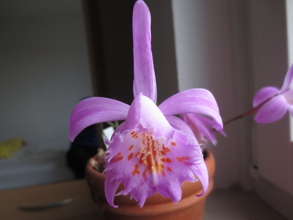Bei mir ist es noch sehr ruhig bei den Pleionen, viele haben noch nicht mal mit dem Treiben angefangen. Pleione humilis ist weg, Eiger blüht und Zeus-Weinstein ist gerade Top in Blüte: