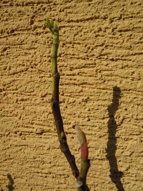 Stand des Austriebes bei mir:Kübelfeigen (frostgemindert in der dunklen Garage überwintert), stehen an der Südwand des Hauses.rötlicher Austrieb: Negronnegrüner Austrieb: Longue d aout?