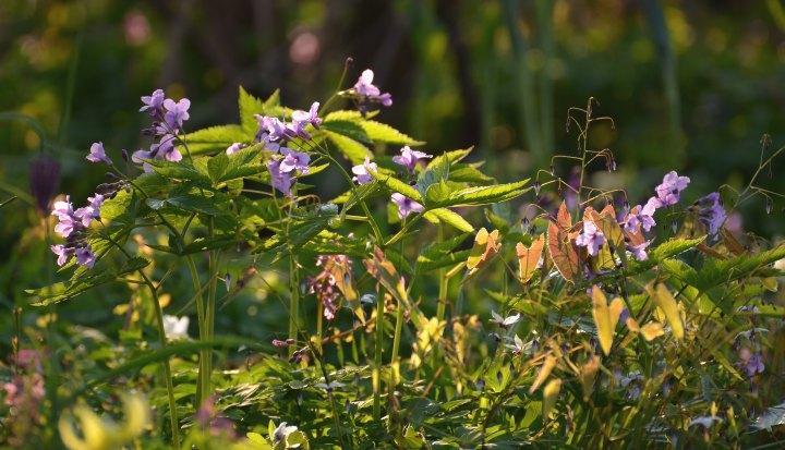 .Sie kommen nun langsam in die Gänge. Hier Epimedium fargesii mit Cardamine pentaphylla im Abendlicht, ich könnte es stundenlang angucken, so schön sieht das aus (natürlich erst, wenn das Epimedium voll blüht, aber man kann es schon ahnen, finde ich...).