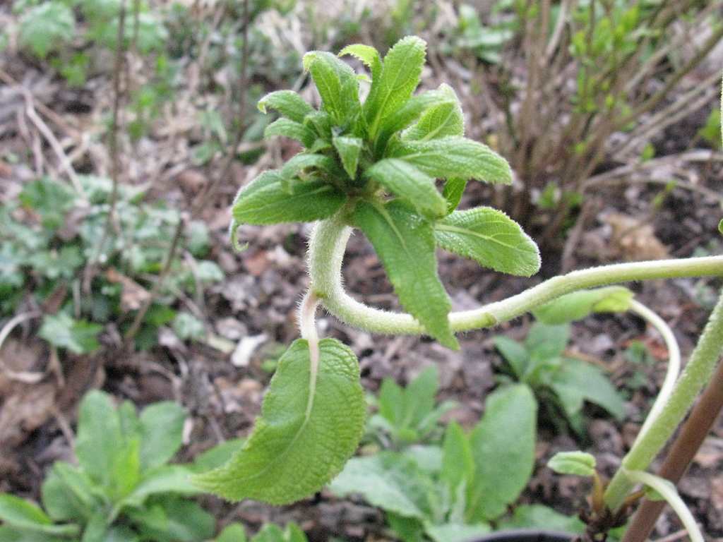 Das im allgemeinen Hortensienthread aufgekeimte Thema Hydrangea aspera 'Hot Chocolate' verlagere ich einmal hierher, weil es mir ein sehr spezielles Thema zu sein scheint.Ich habe die Pflanze im letzten Jahr ca 40 bis 50 cm hoch bekommen und nicht ausgepflanzt sondern im Keller überwintert. Sie ist bis jetzt schon etwa 25 cm gewachsen und hat viele Blütenknospen angesetzt.Diese Hortensie hat eine eigenartige Wuchsform, bei der sechs Grundtriebe aus einer Basis entspringen. Für mich ist dies ein Hinweis auf Meristemvermehrung, da auch stark Ausläufer treibende Samthortensien aus Stecklingsvermehrung nur einen starken Grundtrieb aufweisen.Einer dieser Grundtriebe ist aus mir nicht erklärlichen Gründen während des Austriebs abgestorben. Die Pflanze wirkt ansonsten völlig gesund.
