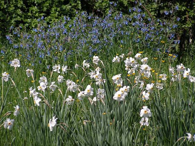 ....poeticus ? Die völlig weißen Narzissen sind N. triandrus thalia - hier neigt sich die Blütezeit dem Ende zu. maliko
