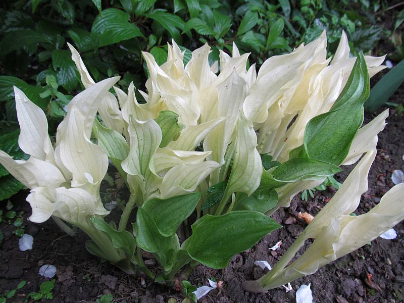Irm, Deine Hosta 'White Feather' erinnert mich an den diesjährigen Austrieb meiner Pflanze, die ich vor ein paar Jahren als Hosta mit grünen Blättern gekauft hatte. Den Sortennamen habe ich leider nicht mehr in Erinnerung. Sie hatte auch tatsächlich grüne Blätter. Bereits letztes Jahr kam es mir vor, als ob das Grün ein bißchen cremefarben überhaucht wäre. Und nun dieser Austrieb.