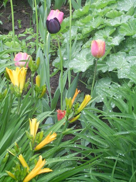 Das ist noch einmal meine Kombination "Princess Irene" und "Queen of Night", hier zusammen mit den ersten Taglilienblüten:lg, borragine