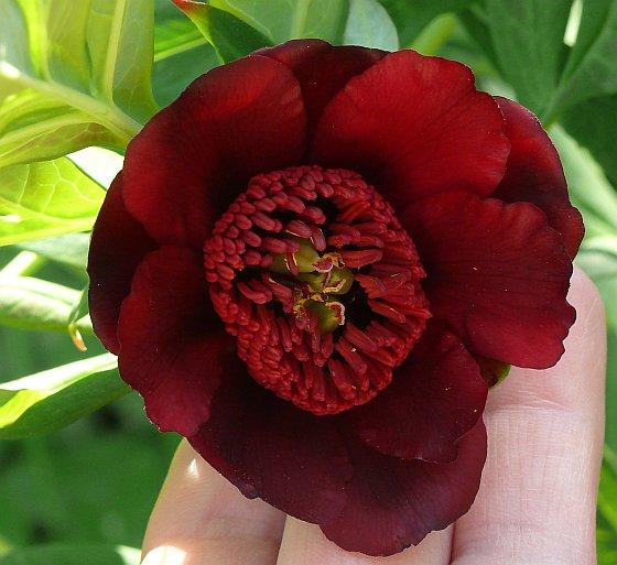 Sehr hübsch, die dunkelrote.Dunkelrote P. delavayii scheinen wohl seltener zu sein, als die rostigen. Mir gefallen sie vor allem, wenn sie durcheinander gemischt stehen.Hier meine P. delavayii, betäubender Duft übrigens, Parfüm pur!