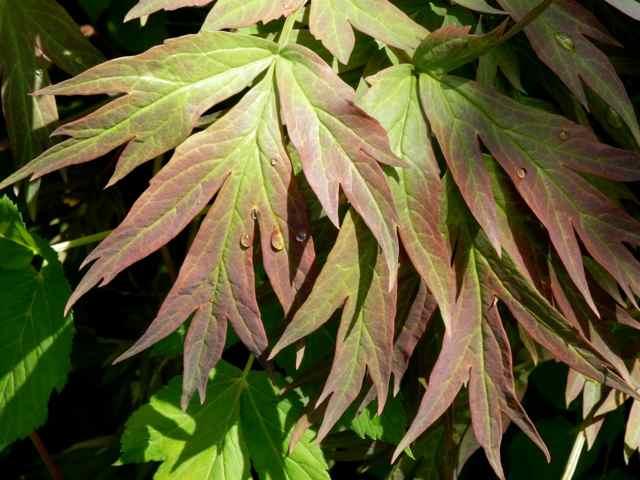 Diese hat vielleicht nicht ganz so schönes Laub wie Brocade, gefällt mir aber auch sehr gut: Souvenir de Lothar Parlasca, gekauft 2009 auf dem Kiekeberg. In diesem Jahr hat sie auch einen dritten Bodentrieb bekommen und insgesamt 15 Blüten. Die weiße Rockii aus dem gleichen Jahr ist allerdings insgesamt mindestens 5mal so groß (was die Anzahl der Triebe angeht).