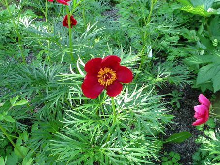 Die Paeonia anomala kann auch in kräftigen Rottönen. Gegenüber in Festlandasien