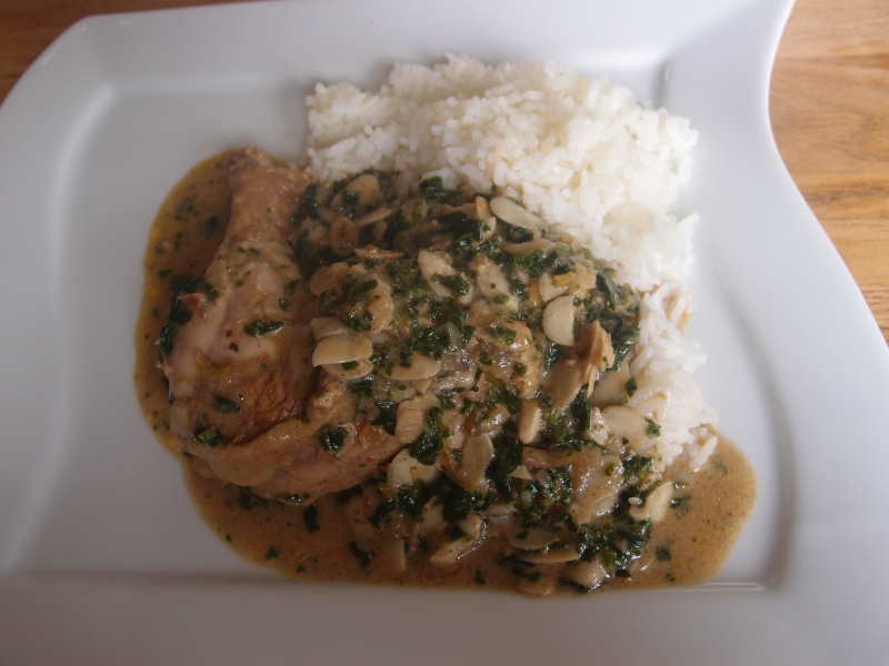 kennst du das rezept?bei uns gabs die letzten tage indisches kokos-mandel-spinathuhn mit reis