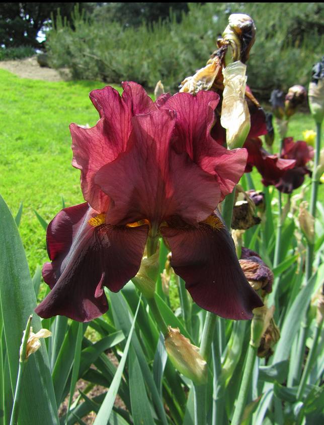 Kommt eventuell 'RED ZINGER' (Paul Black, 1985) IB, in Frage?http://pics.davesgarden.com/pics/2004/06/15/laurief/bdcfb9.jpg'WAR CHIEF' von Schreiner 1992 wäre auch eine Option?Hängt m.E. von der Farbe der Bärte ab, die man auf dem Bild von Martina nicht genau erkennen kann. Stehen die Hängeblätter ständig waagerecht?Diese etwa kniehohe Iris blühte heute als eine von ganz wenigen im Dycker Feld. Wer könnte das sein?[td][galerie pid=102148][/galerie][/td][td][galerie pid=102147][/galerie][/td][td][galerie pid=102146][/galerie][/td]