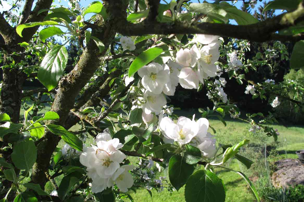 [/size]Mit derart Aufregendem kann ich nicht dienen, aber am WE war ich ziemlich begeistert von meinen Apfelbäumen - der Gravensteiner (rechts) steht schon 10 Jahre, heuer blüht er zum ersten Mal richtig. Der andere ist ein echter Lederer. Und ja, der Flieder fängt gerade an zu blühen