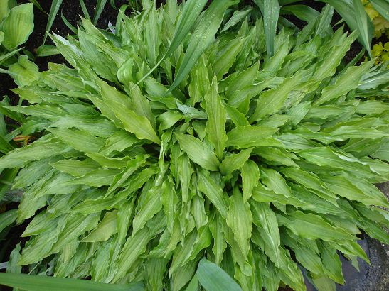 Sehr unauffällig, dafür noch wüchsiger....... tja, was ist das bloß für eine Sorte ?Wird nicht höher als etwa 30 cm, bildet große Rosetten und hält sich auch gut in der vollen Sonne.