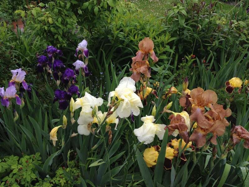 schade, dass die iris-hauptblüte so heftig verregnet - die ersten blütenstengel liegen schon quer in den beeten, von schnecken erobert...