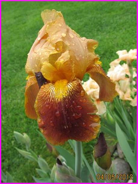 Leider sind die beiden Fotos sehr klein und der Lichteinfall der warmen Sonnenstrahlen verfälscht den Farbeindruck der gelben Dom- und roten (oder rostrot oder purpurrot?) Hängeblätter. Haben die Hängeblätter einen schmalen gelben Rand? Bärte durchgehend gelb-orange?In Frage kommen mindestens 4 Sorten:1) - 'Accent' (Buss, 1952) - Hängeblätter eher blutrot ohne Saum2) - 'Frank Adams' (Lapham, 1937) - Hängeblätter eher rosenrot, dürfte jetzt aber noch nicht verblüht sein3) - 'City of Lincoln' (Sass, 1936) - Domblätter goldgelb, Bärte orange, Hängeblätter rostrot/kastanienrot, leichter Duft, HM 1937, AM 19394) - 'Staten Island' (Kenneth Smith, 1947) - ein Abkömmling der Nr. 3 - am gelben Saum auf den Hängeblättern voneinander zu unterscheiden:http://theamericanirissociety.blogspot.de/2012/05/iris-classics-staten-island.htmlWie schon so oft hier erwähnt: es ist extrem schwierig, eine Iris lediglich anhand eines (verhältnismäßig) kleinen Fotos zu identifizieren. In den 30ern bis 50er Jahren wurden etliche Variegatas, Bicolore gelb/rot gezüchtet, ähnlich wie Ende des letzten Jahrhunderts die schwarzen - anhand von Bildern kaum voneinander zu unterscheiden. Gefühlsmäßig würde ich auf 3) oder 4) tippen.Vielleicht könnt ihr mir heuer bei der Identifizierung einer alten wüchsigen Sorte helfen?