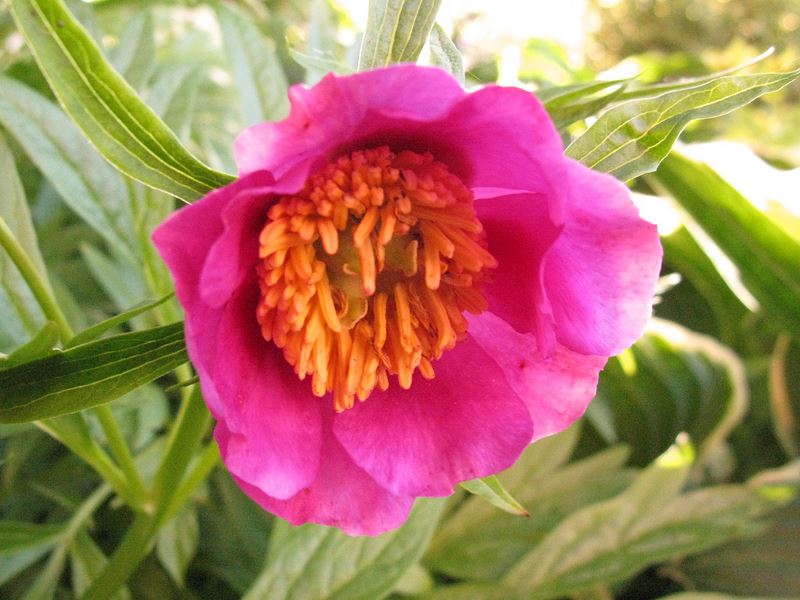 Die Pflanze bleibt mit 50 cm deutlich niedriger als die Paeonias, die ich unter dem Namen P. veitchii und P. anomala im Garten habe und blühte in den letzten Jahren immer etwa 2 bis 3 Wochen später als diese.Sie steht relativ schattig unter einer Schlehe und setzt trotzdem jedes Jahr reichlich Blüten an. Hier ein älteres Bild.