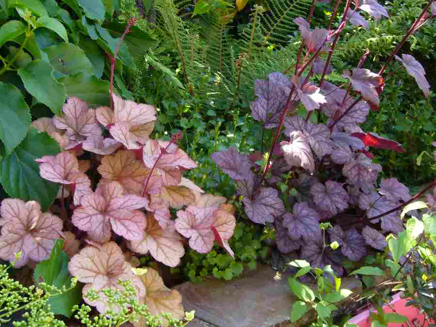 Lime Marmelade und Heucherella Sweet Tea, fast ganz zugedeckt dahinter eigentlich noch ObsidianHalbschatten