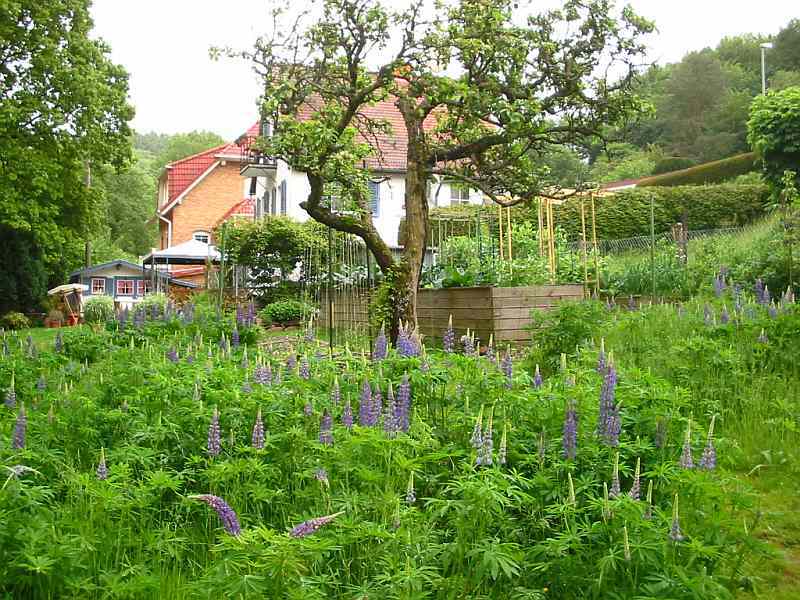 !Ih hab gestern auch eine Runde mit dem Fotoapparat gedreht.Mein Kistengarten von weitem, die Lupinen mussten mit aufs Bild