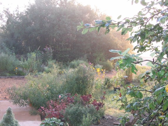 oh, schönes Foto, Landpomeranze!Ich mag Nebelbilder auch gerne,unten ein Beispiel, es zeigt den Vorgarten kurz vor der Asternblüte.Vielleicht erkennt man hier auch meine Probleme, so ein richtig schönes Staudenbeet anzulegen. Mit den Höhen, Proportionen, Farben und Texturen gleichzeitig arbeiten, das muss ich auch noch erst lernen.Ein paar Zufallstreffer sind ja immer dabei, hihi. Aber der Gesamteindruck ist weitestgehend: Chaotisch.Klar, die Zeit ist auch bei mir begrenzt, aber wie bei Dir mäht auch bei mir der Bauer einen grossen Teil der Wiese zwei mal im Jahr und den Gestrüpp-Streifen möchte ich im hinteren Bereich auch lassen, höchstens etwas auslichten und aufasten, Wege hindurch anlegen, diese seitlich vielleicht mit Farnen und robusten Schattenpflanzen bepflanzen und am "Eingang" in dieses Dickicht eine Art Tür reinschneiden und diese mit Ramblerrosen bepflanzen.Das stell ich mir irgendwie schön vor, so wie man in der Kindheit immer solche "Eingänge" ganz interessant fand, mal sehen, ob mir dieser Effekt gelingen wird.In Planung ist auch noch eine Art "Teehaus", aber nicht so ein abgehobenes Teil in strahlendem Weiß, das würde nicht in die Umgebung passen, aber eben einen gemütlichen Rückzugsort mit kleinem Öfchen drinnen für kühle Herbsttage.Und Wasser muss auf jeden Fall auch in den Garten!Ach, was hab ich Ideen, und so ein Jahr ist soooo schnell vorbei.....Ach ja, ich wollte diesen Herbst noch einen Baum pflanzen, der ein wenig Ruhe ausstrahlt, mit großen Blättern, möglichst. Kalkverträglich sollte er sein. Hat jemand da eine Idee??LGMarieLouise